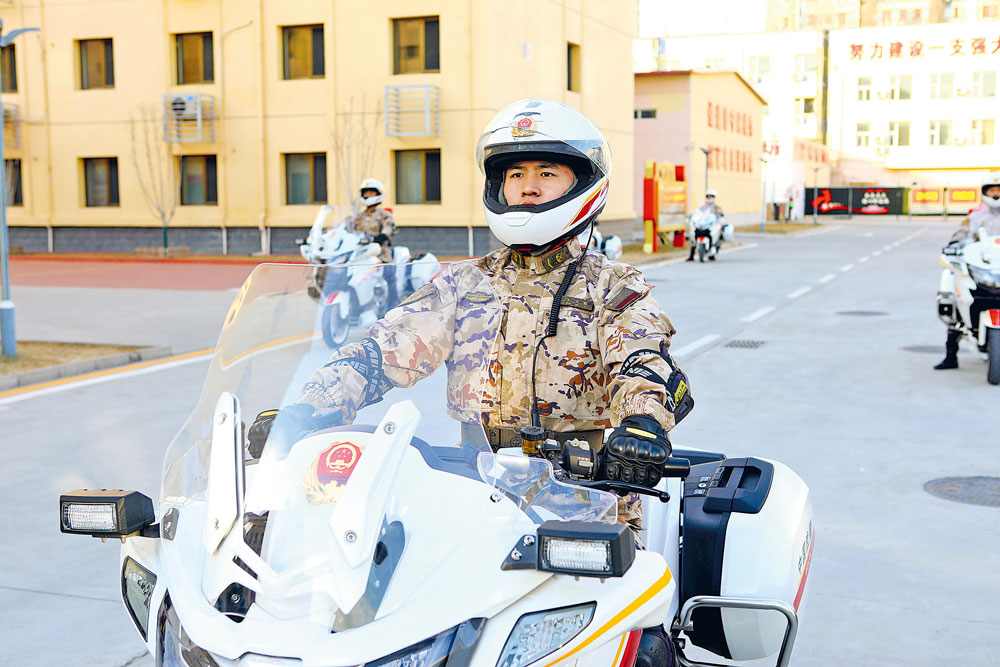 戴头盔、跨摩托、捏离合、拧油门,官兵听令而行,车队衔接顺畅,默契似行云流水。