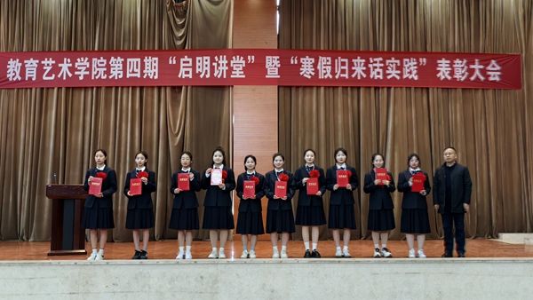 2月25日下午,教育艺术学院在高新校区科教楼K101报告厅举行“启明讲堂”第四期暨“寒假归来话实践”表彰大会。学院负责人、全体党员教师以及300余名师生参加此次活动。