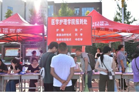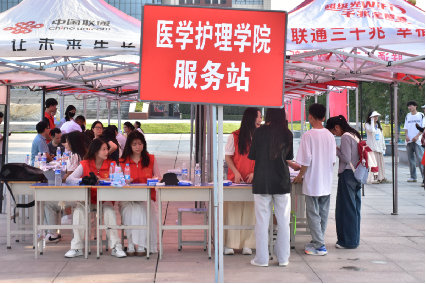 1. 这里是医学护理学院服务站:(1)小萌新们到校的时候如有疑问,可以在迎新咨询台这里咨询报到的相关问题;(2)同学们报道时如若行李过多,可以暂放至旁边的临时行李存放处,但贵重物品需自行看管好。