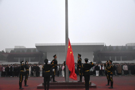 为增强学生的爱国情怀,响应校团委工作号召,医学护理学院于11月11日在高新校区操场举行了一场以“我与祖国共奋进”为主题的升国旗仪式。医学护理学院书记刘国宣、学工办主任杨丙南以及全体辅导员班主任老师率先垂范,站在队伍前列,与全体在校学生一同参与了这一庄严时刻。