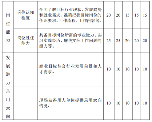 职业目标和岗位要求的契合度。 (详见附件 2)