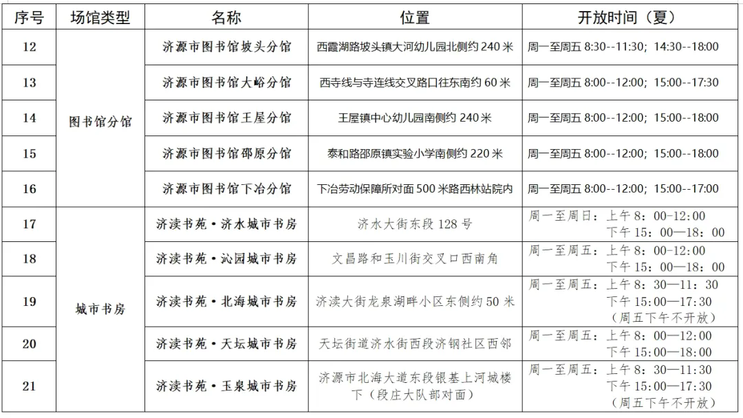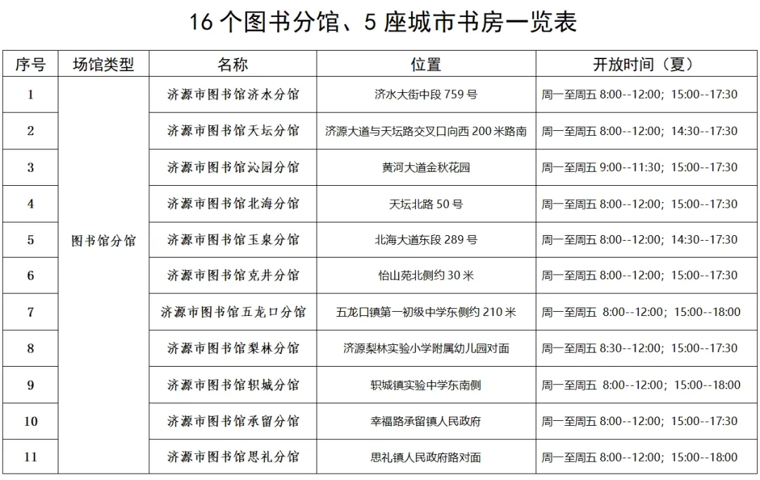 附件:16个图书分馆、5座城市书房一览表