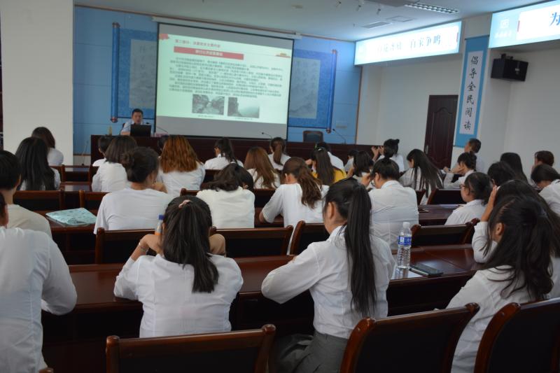 新中国成立70周年、建党98周年之际,在全国上下扎实开展“不忘初心,牢记使命”主题教育活动之际,为了弘扬革命传统,传承红色文化基因,更好地守初心,担使命,坚定理想信念,6月26日下午,学院组织部、图书馆在三楼报告厅共同举办了“学习党史感悟初心,坚定理想不懈奋斗”专题讲座,讲座系《济图讲堂》第147期。讲座嘉宾为中共济源市委党史研究室张新武主任,图书馆全体党员及职工代表、学院人文管理系和教育艺术系的优秀学生代表共100余人参加了讲座。