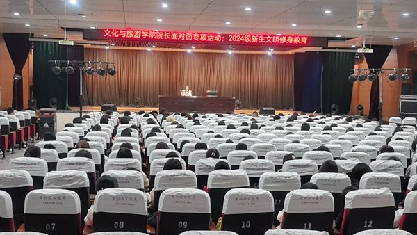 秋风送爽,细雨绵绵,2024级新生带着对未来的憧憬与梦想,踏入了校园的新篇章。为了引导新生树立正确的价值观,提升个人修养,10月17日下午,文化与旅游学院院长张端端教授在实训B楼报告厅为全体新生带来了一场别开生面的院长面对面专项活动:“文明修身教育”讲座。