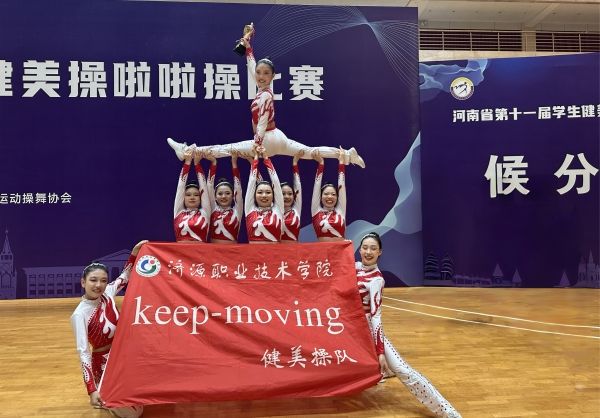 2024年河南省第十一届学生健美操啦啦操比赛于6月10日至14日在郑州西亚斯学院体育馆正式开赛。我校健美操啦啦操代表队由高瑞芳、郭丁铭任教练,学前2208张静怡、周洋洋、早教2201马静雯、语教2301孙一萱等12名队员参加比赛,经过激烈比拼,我校健美操队以优秀的精神面貌和赛场表现,荣获健美操徒手规定成套第二名、健美操徒手自选成套第五名,学校荣获体育道德风尚奖。