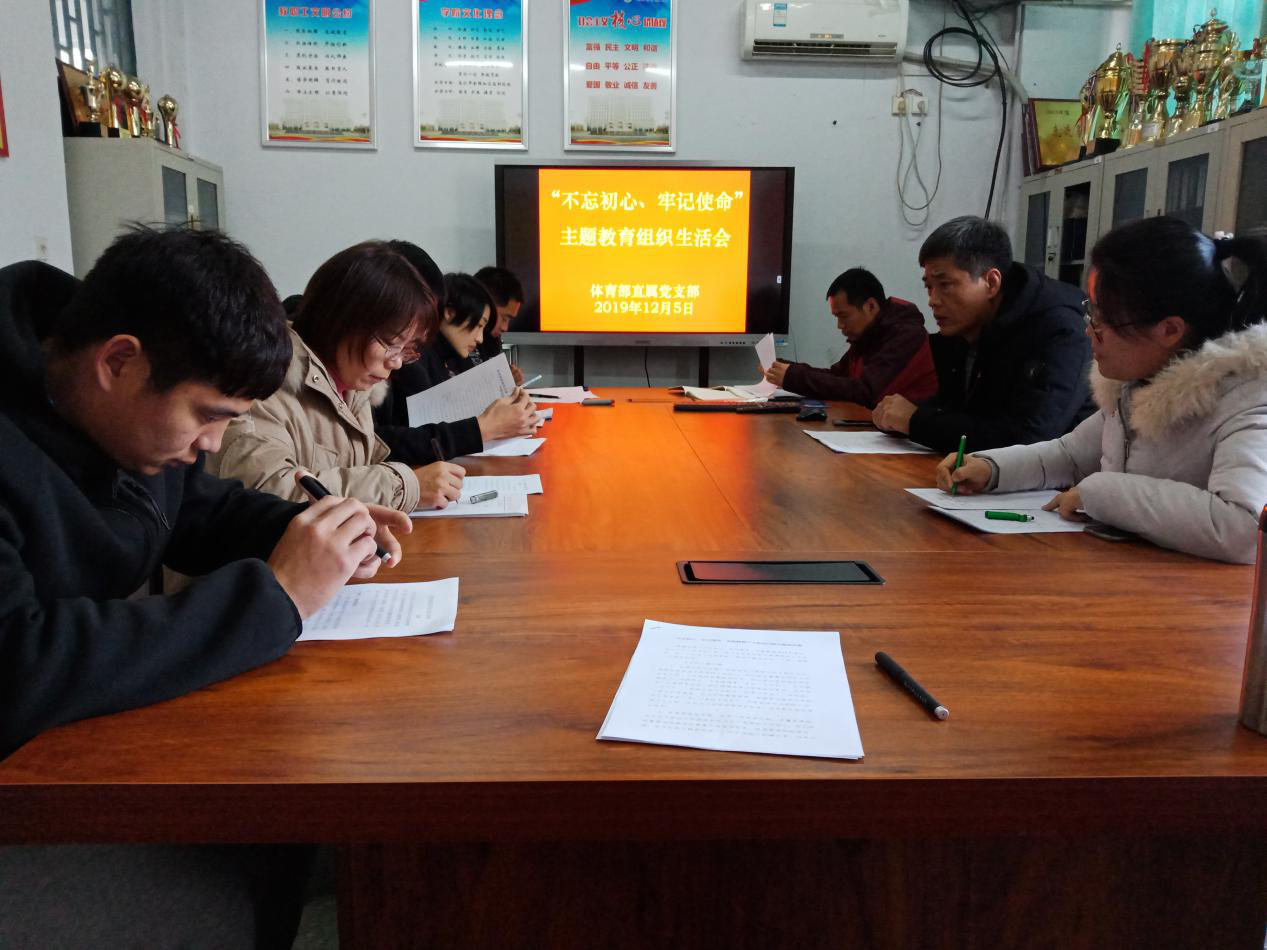 按照示范区党工委和院党委的安排部署,12月5日,体育部直属党支部召开了“不忘初心、牢记使命”主题教育专题组织生活会,支部书记张有智同志和支部全体党员参加了会议并进行了民主评议党员工作,学院“不忘初心、牢记使命”主题教育第一指导组秘书张杰同志列席会议。