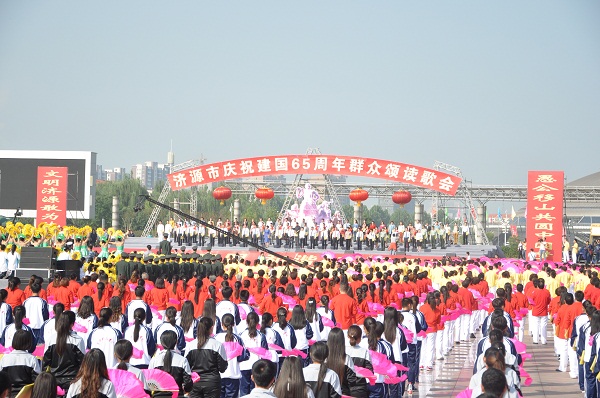 我院1500名学生参加济源市庆祝建国65周年“愚公移山 文明济源”广场演出活动