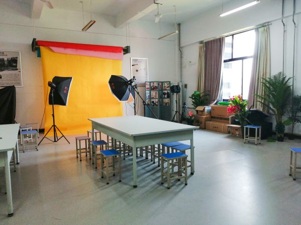 该实训室现在配置有整套供进行人像摄影、广告摄影、产品摄影的灯光设备,各色背景,数码照相机等。主要用于学生的广告摄影、人像摄影、产品摄影等基础训练,为学生将来从事这些行业的工作提供必要的实训场所。