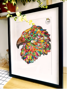 2. 技术创新:以纸的多变性和较强的可塑造性,创作出基础表现形式:框画类(动物、植物、动漫、花环等);延伸表现形式 :立体景观类(蘑菇、多肉、盆栽、怪兽、主题)、挂件类(书签、车挂、门挂)、饰品类(胸针、耳饰、项链、帽子装饰)等